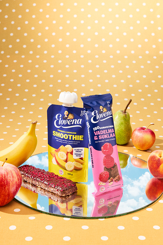 Ilonpilkahdus arkeen! Elovenan uudet välipalatuotteet on suunniteltu kaikkiin hetkiin. Smoothie välipalapussit ja isot kaurapatukat ovat kerrassaan kiehtovia uutuuksia, ja ne kulkevat huoneenlämmössä mukana mennen tullen. Ne on sopivat hetkiin, jotka vaativat herkullista, terveellistä ja vaivatonta välipalaa. Isoissa kaurapatukoissa on rouhea rakenne, suussa sulava kuorrute ja rouskuvia ripotteita, jotka nostavat hymynkareen huulille arkisenakin välipalahetkenä. Elovena Smoothiet taas on valmistettu marjoista, hedelmistä ja kaurasta, ja ne ovat terveellisiä ja herkullisia valintoja välipalaksi.